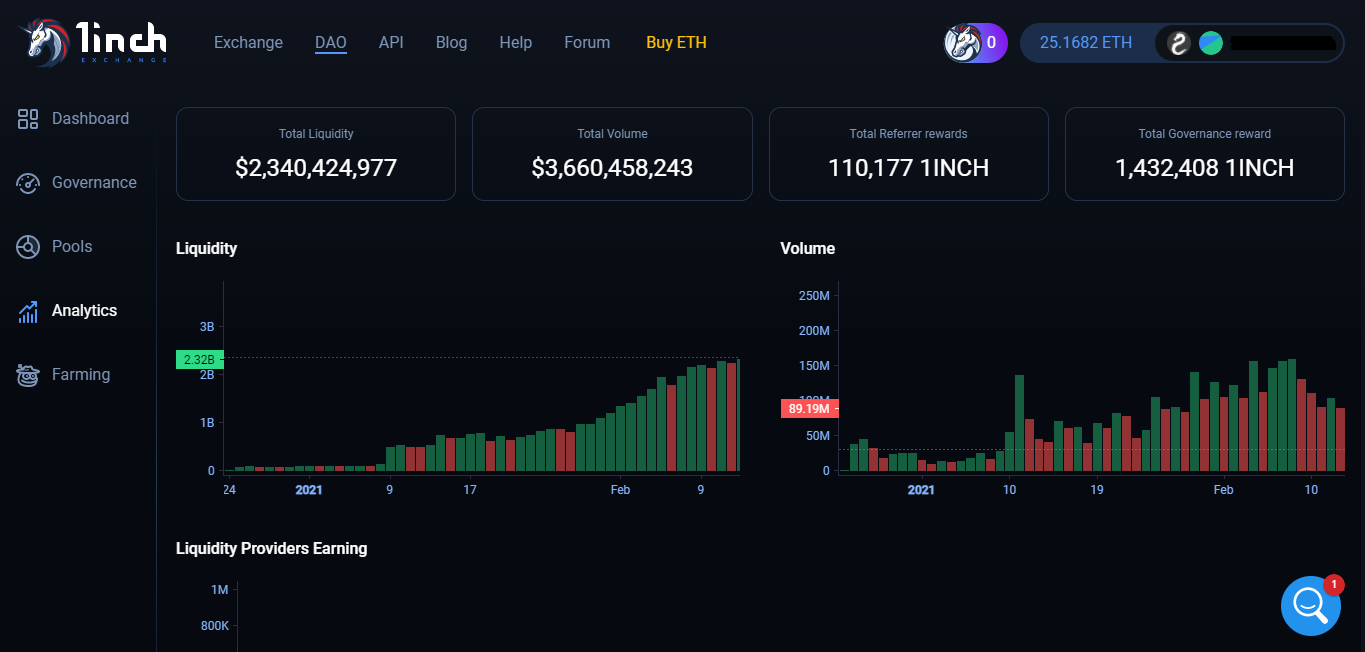 Once you connect to 1inch with our link, you can see your own referral link to help you also start earning 1inch tokens.