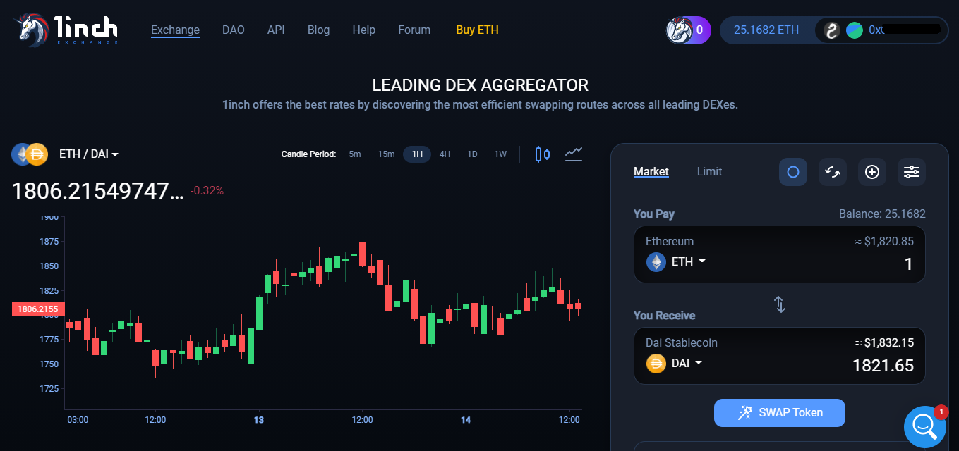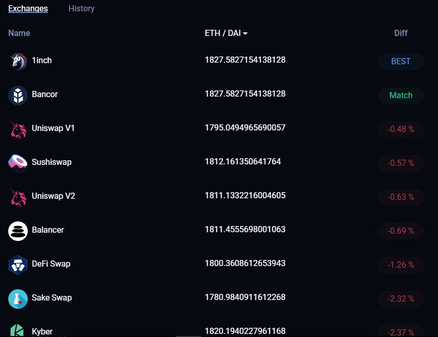 1inch offers the best rates by discovering the most efficient swapping routes across all leading DEXes.