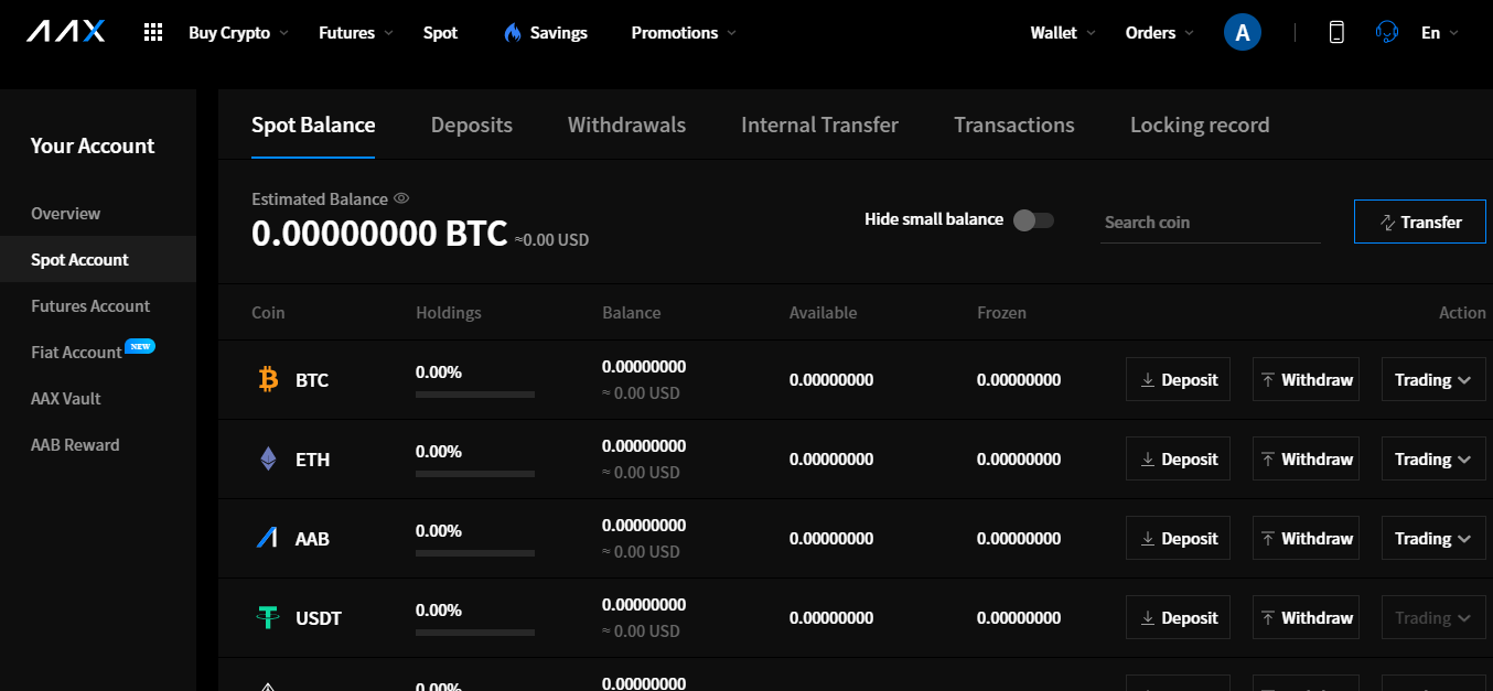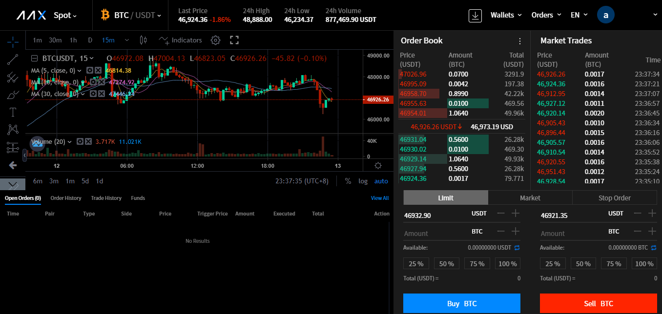 AAX offered a good selection of assets for trading, including BTC, ETH, EOS, LTC and many others. They offered both spot and futures trading.