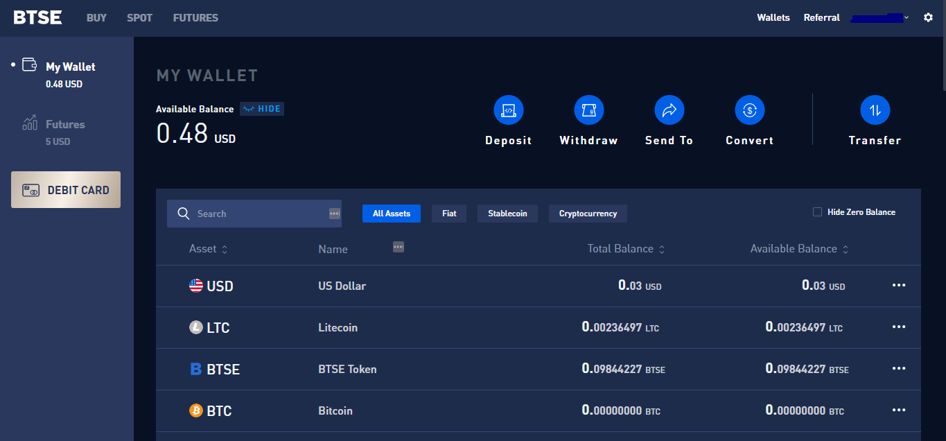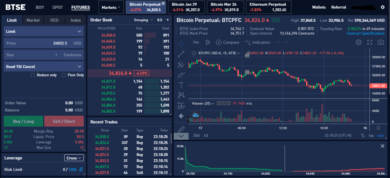 BTSE offers both spot and futures markets. Fiat deposits and withdrawals are supported as well as a large selection of cryptocurrencies.