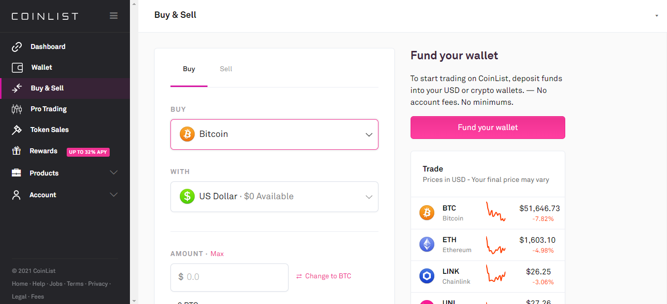 Coinlist is a lesser known cryptocurrency exchange, but has risen to fame due to it's iconic token sales such as that of Casper and Mina. They have a simple to use mobile app for iOS and Android. They have a limited amount of cryptocurrencies available, but do have a fiat on and off-ramp.