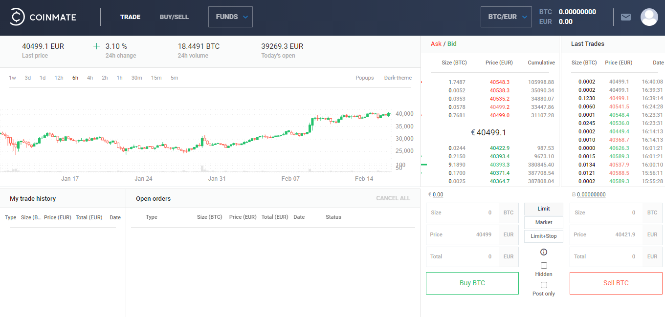 Coinmate is primarly used for trading in Euros, and could be good for European traders. They also support PLN, GBP and CZK currencies.