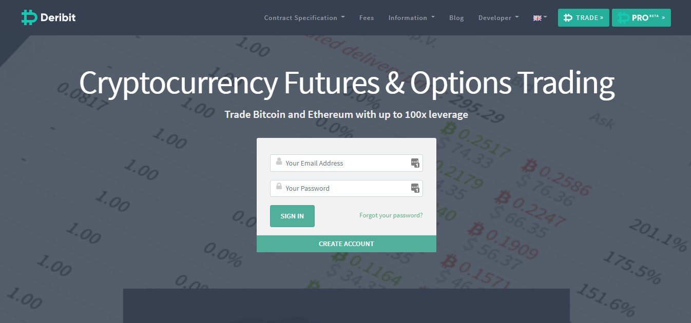 Deribit is a platform where you can trade BTC and ETH options and futures contracts with leverage up to 100x. It launched in June 2016 and is based from the Netherlands.