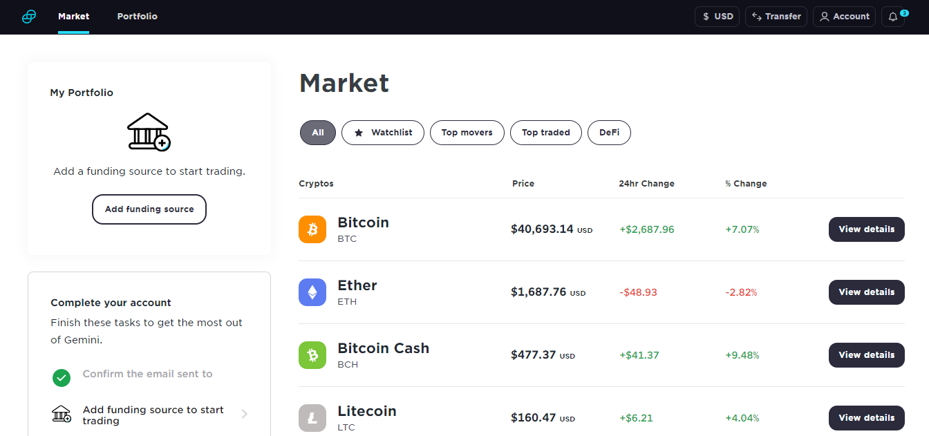 Gemini is one of the pioneers of cryptocurrency, having been founded back in 2012. They no boast some of the best liquidity and highest trading volume of all exchanges. They have a large variety of cryptocurrencies available and good fiat on and off-ramps.