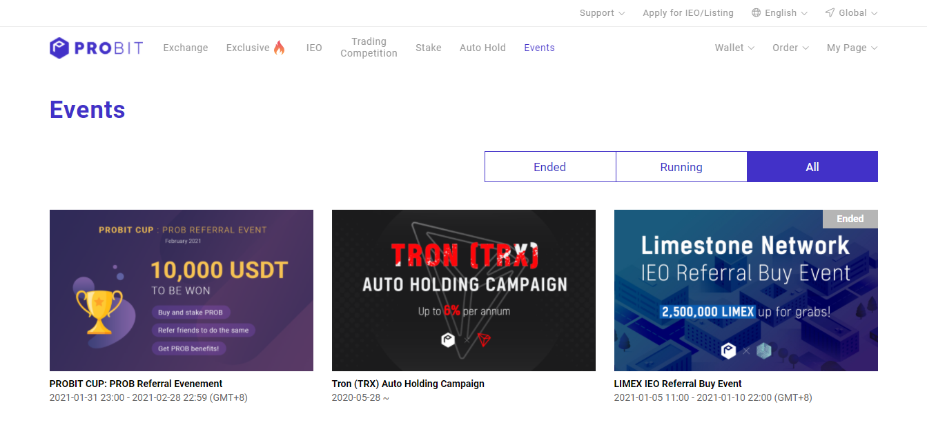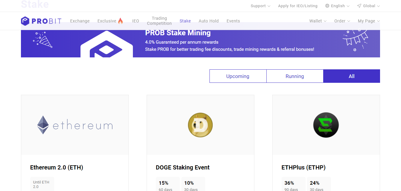 It is possible to get trading fee discounts by buying PROB tokens, then pay trading fees with PROB to get a fee as low as 0.03%. You can also stake PROB and earn PROB at a rate of 4% per annum. There is 'ProBit Exclusive' which allows you to subscribe to get up to 50% off selected tokens. Lastly, 'Auto Hold Campaigns' which hold your tokens to get 6% annualized returns.
