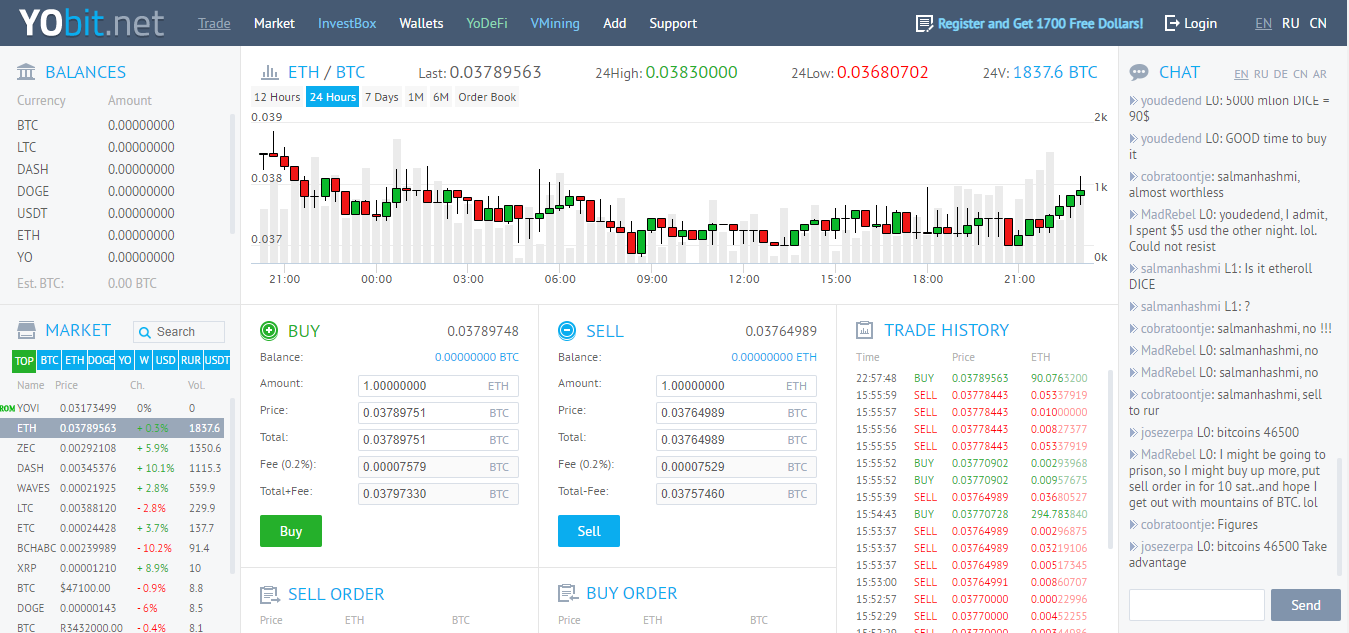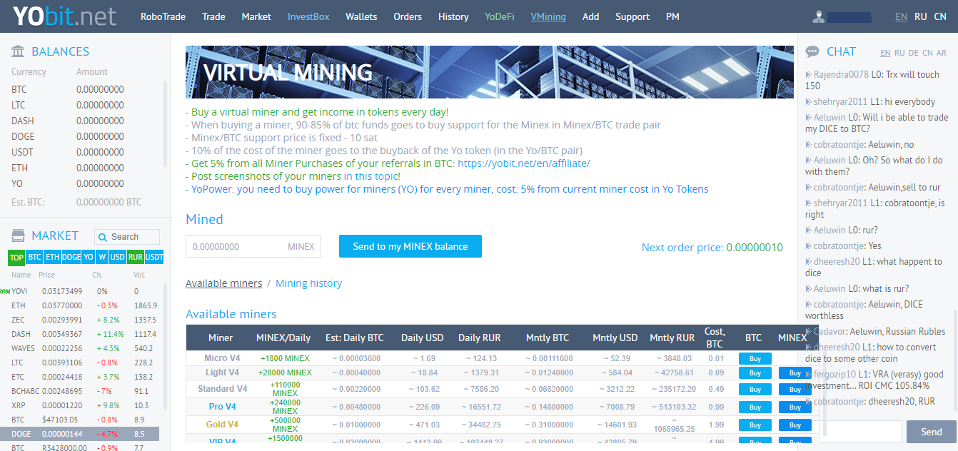Yobit is a cryptocurrency exchange, that also offers virtual mining. and a number of other features and products. However, we are not keen on the user interface and the amount of English mistakes does not make it a reassuring exchange.